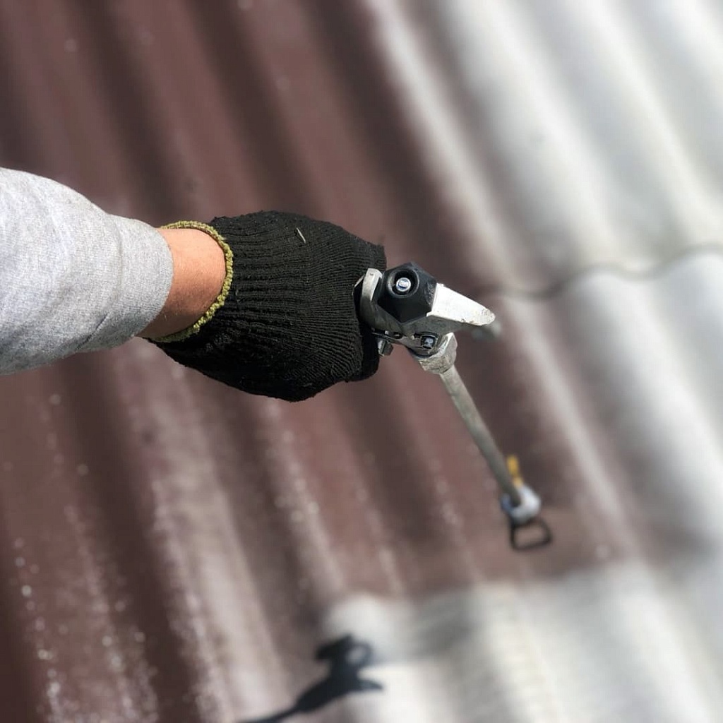 • Чистка крова от коррозии и отшелушивающегося слоя краски. Это будет следующим подготовительным шагом. После того, как крыша высохнет, наша команда производит зачистку от коррозии при помощи специальных щеток по металлу и болгарки (углошлифовальной машинки) с насадками для зачистки. Эта стадия обязательна в процессе покраски.