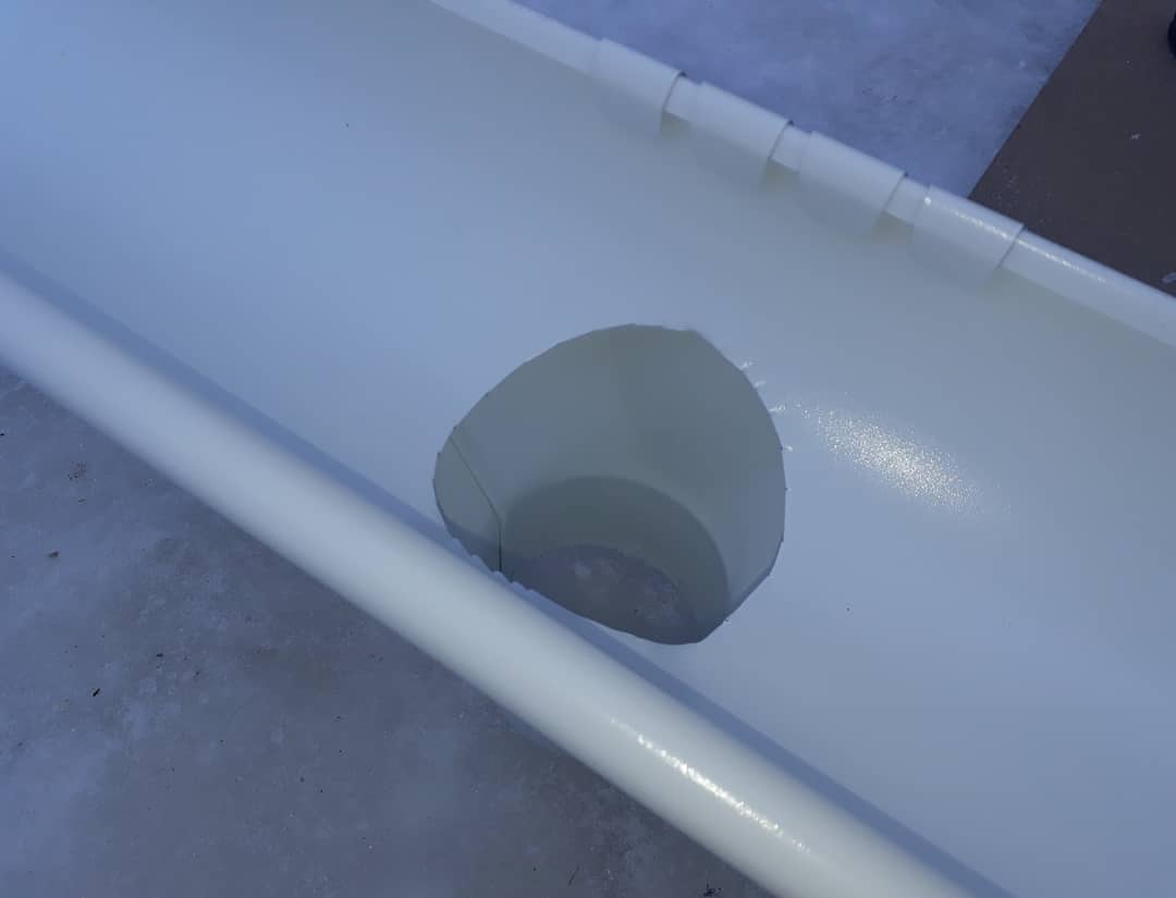 При монтаже водоотвода используется силикон. Путем обработки силиконом уплотнителей системе придается дополнительная прочность. В точке стока над отверстием для слива, в желобе, проделывается отверстие, торцы желоба укомплектовываются специальными заглушками.