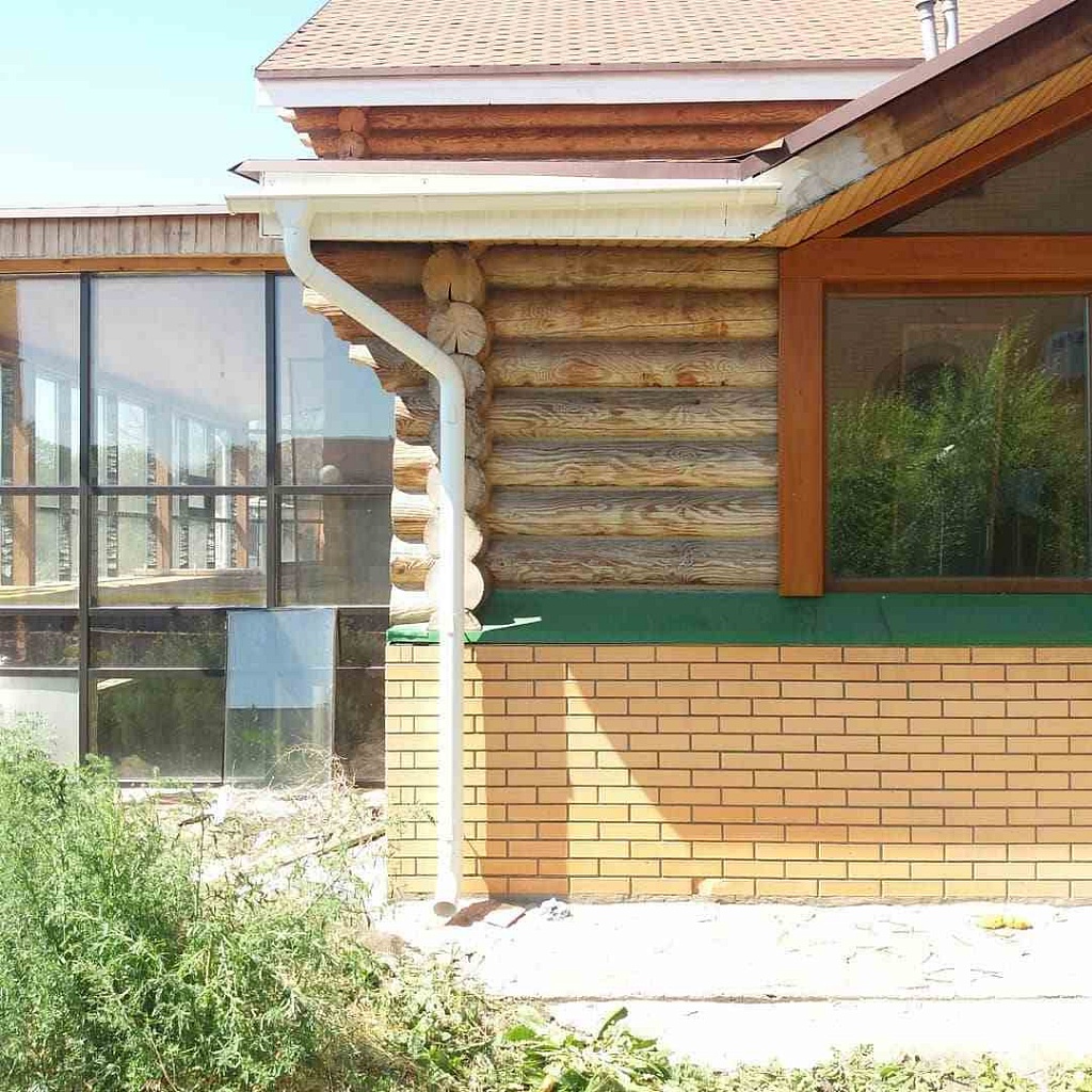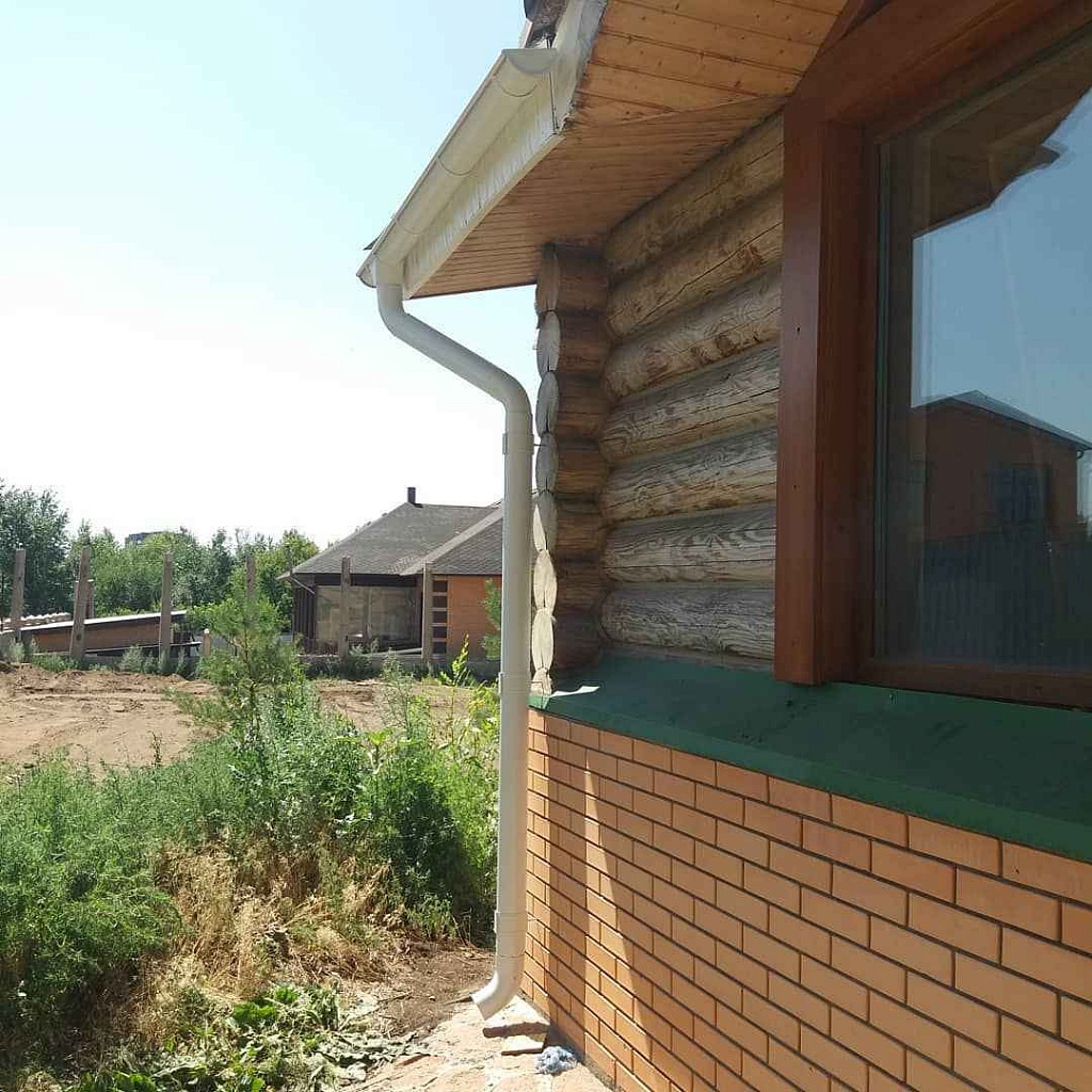 После дождя и при таянии снега вода по желобам направляется к сливным трубам. Если на объекте присутствует система дренажа вокруг здания, вода поступает сразу в коллектор.