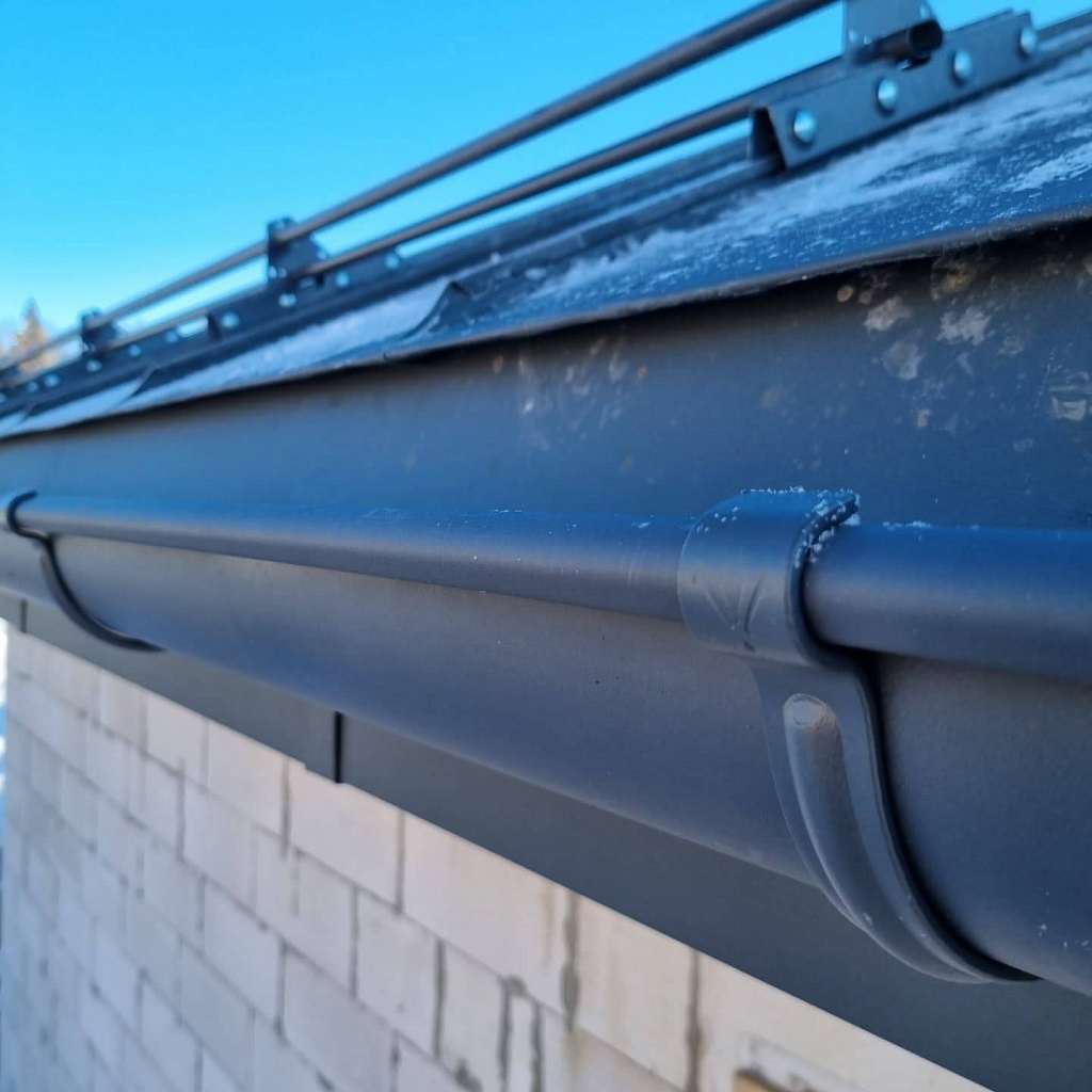 Начинать крепить желоба рекомендуется с наиболее отдаленного от воронки для стока воды места. При установке кронштейнов целесообразно соблюдать минимальный уклон – 0,3 сантиметра на 1 погонный метр.