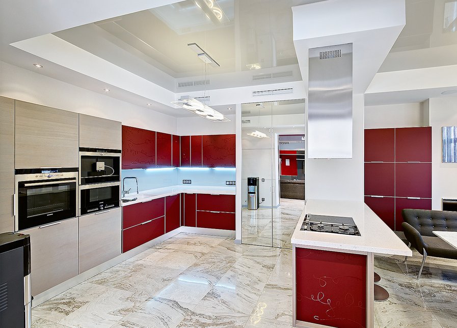 - разноуровневые потолки с эксклюзивными светильниками,